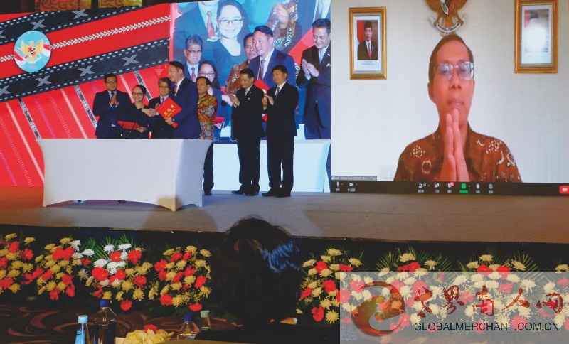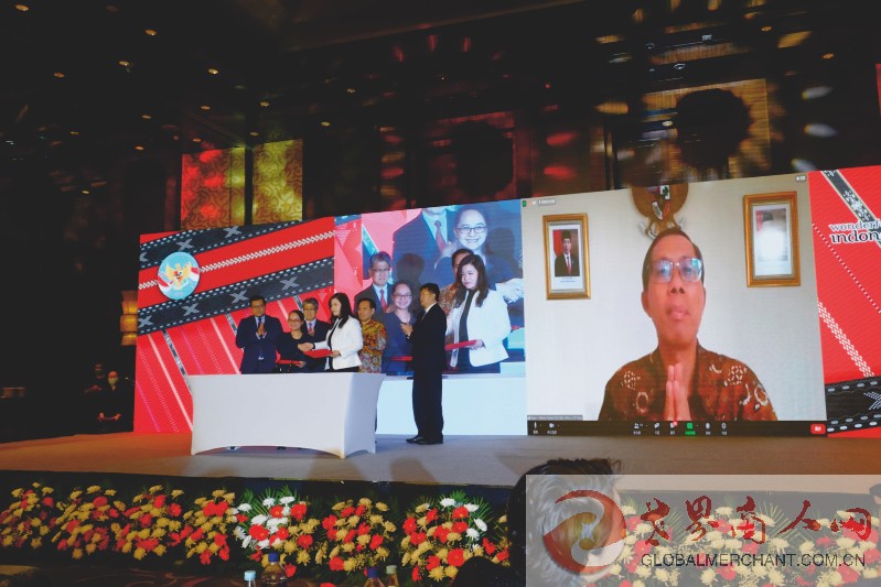 2020年12月9日,印度尼西亚-中国投资商务论坛在印尼民族舞蹈热情洋溢的节奏中拉开帷幕。印度尼西亚共和国驻华大使周浩黎阁下首先致开幕词。中国对外贸易500强企业俱乐部秘书长黄俊先生,印度尼西亚投资协调委员会(BKPM)主席巴赫利尔(H.E.Bahlil Lahadalia)阁下,中国印度尼西亚商会主席李源盛先生也先后致辞。 2020印度尼西亚-中国投资商务论坛上并进行了项目落地签约和授牌仪式。