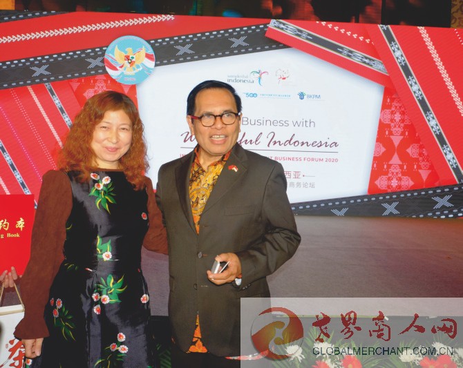环球云链传媒机构董事总经理、世界商人网主编王晓玲与印尼驻华大使周浩黎阁下在2020印度尼西亚-中国投资商务论坛愉快交流并合影