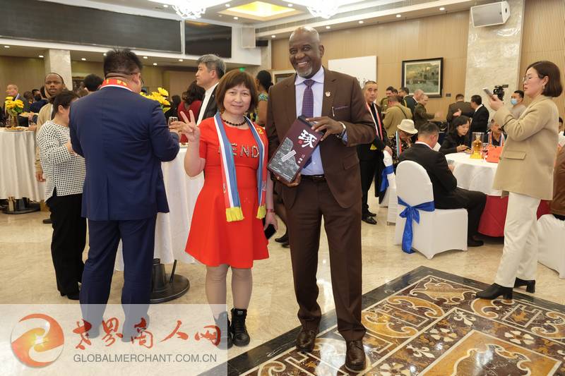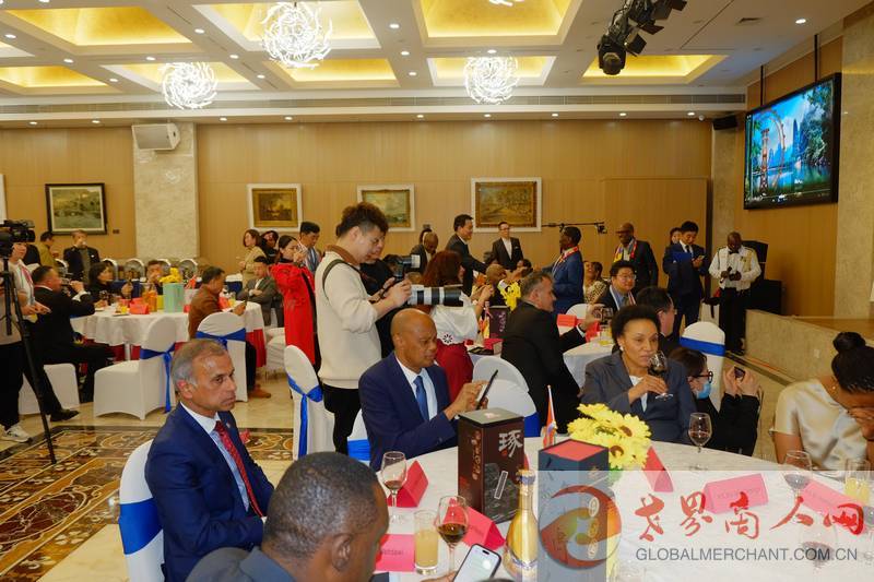 环球云链国际旅行社董事长王晓玲/Marissa女士与加纳驻华大使温弗雷德·哈蒙德先生共享纳米比亚独立33周年国庆日招待会指定用酒:北派酱香,承德“琢酒”
