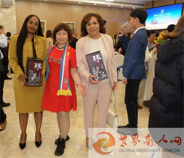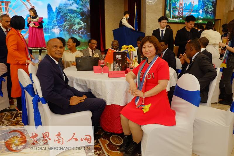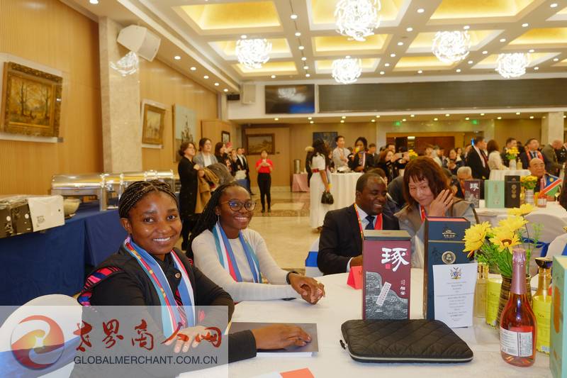 环球云链国际旅行社董事长王晓玲/Marissa女士与科摩罗驻华大使毛拉纳·谢里夫先生共享纳米比亚独立33周年国庆日招待会指定用酒:北派酱香,承德“琢酒”