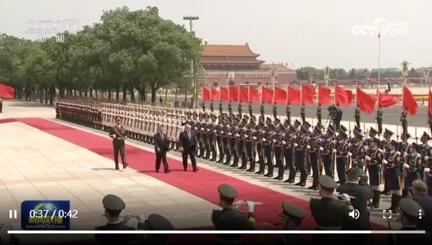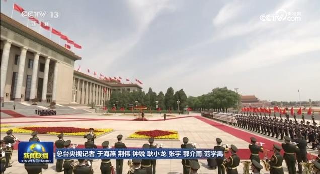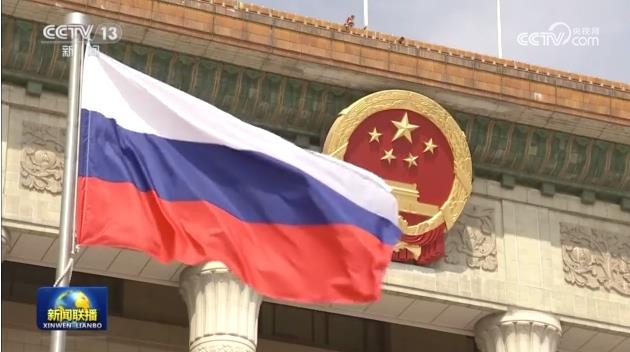 军乐团奏俄中两国国歌。鸣礼炮19响。