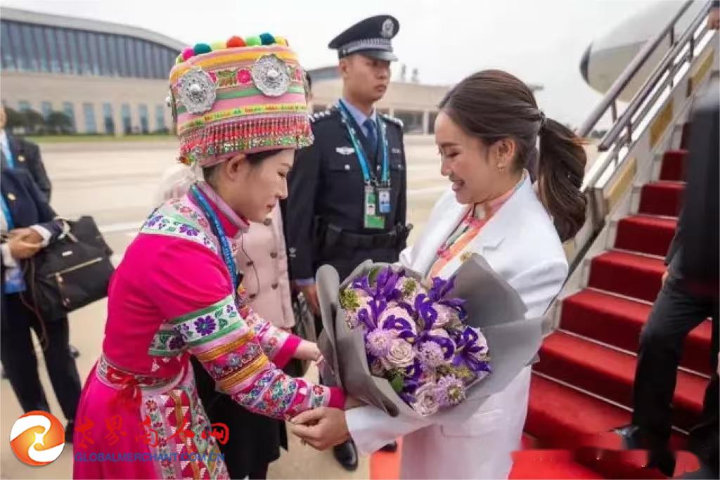北京时间11月6日下午2点,佩通坦、副总理兼内政部长阿努霆、外交部长玛里等一行抵达中国云南省昆明市长水机场。