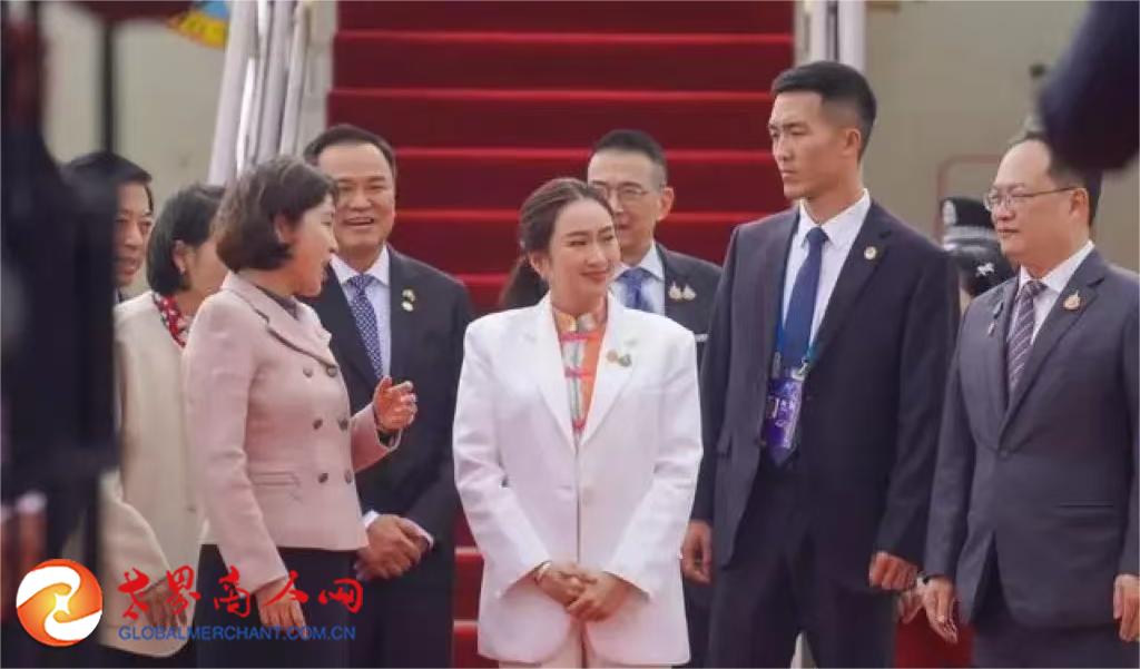 当晚,佩通坦出席为“大湄公河次区域经济合作会议"参会人员举行的欢迎晚宴,并与中国国务院总理李强握手。