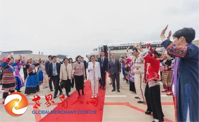佩通坦一行抵达昆明后,受到了代表们的热烈欢迎:中国云南省副省长杨洋、中国驻泰国大使韩志强亲自前往迎接,云南特色表演团队为其献上鲜花以表示欢迎。
